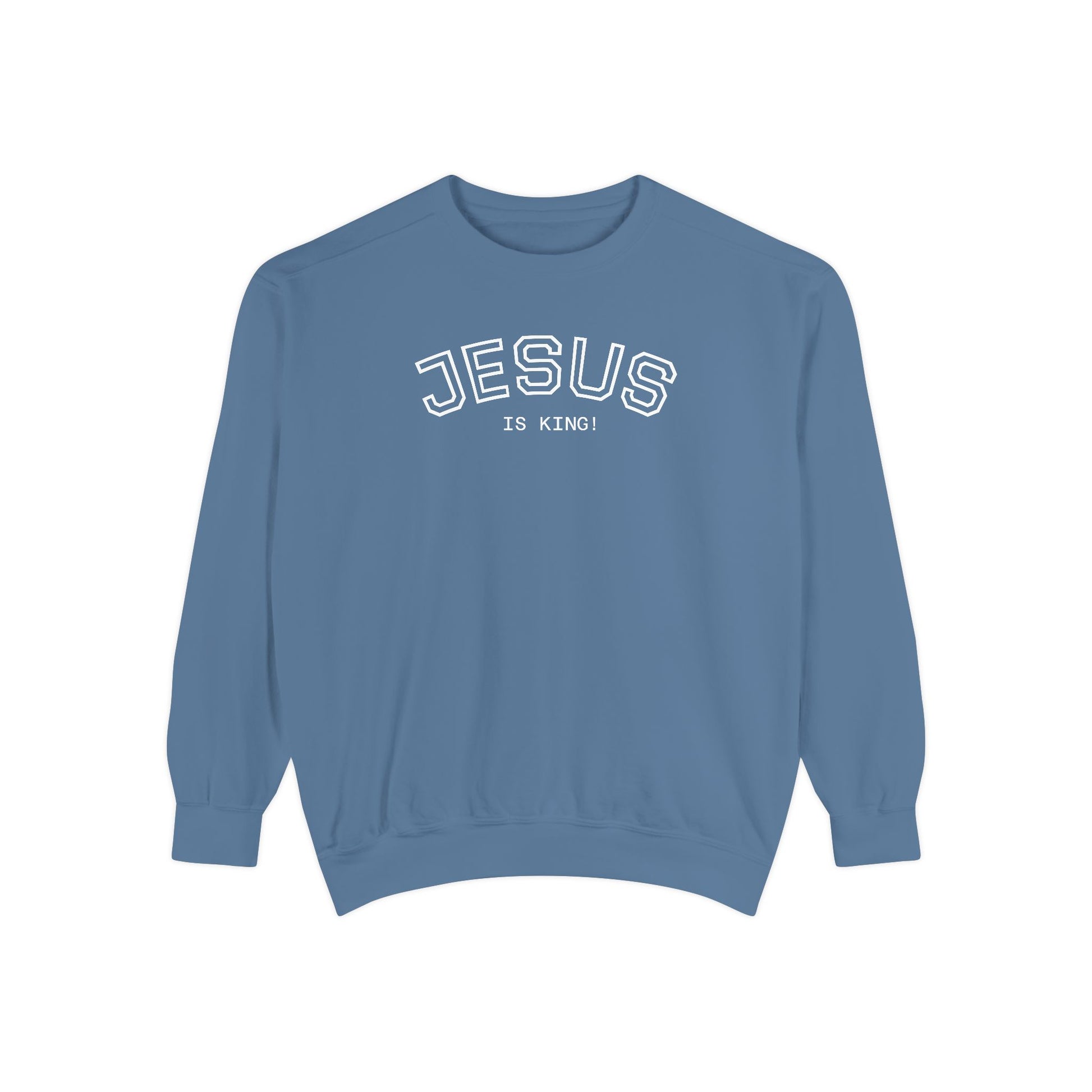 A clean, heavyweight sweatshirt built for everyday wear. Minimal design, maximum statement—Jesus is King.